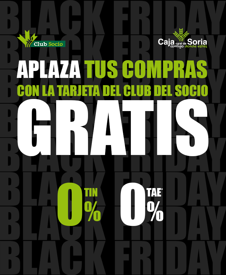 * Ejemplo representativo TAE 0,00%, calculada para una compra de 180€ aplazada a 6 meses al 0% TIN, sin comisiones ni costes adicionales, con un coste total de 0€, sistema de amortización francés, 6 cuotas mensuales de 30€. Para este ejemplo, el PVP de la compra al contado sería de 180€ y el precio total a plazos sería también de 180€. Promoción válida hasta el 30/11/2025 para compras iguales o superiores a 180€ pagadas con la tarjeta del Club del Socio y financiadas a seis meses. Comisión del 3% por amortización anticipada parcial o total sobre el capital reembolsado anticipadamente.