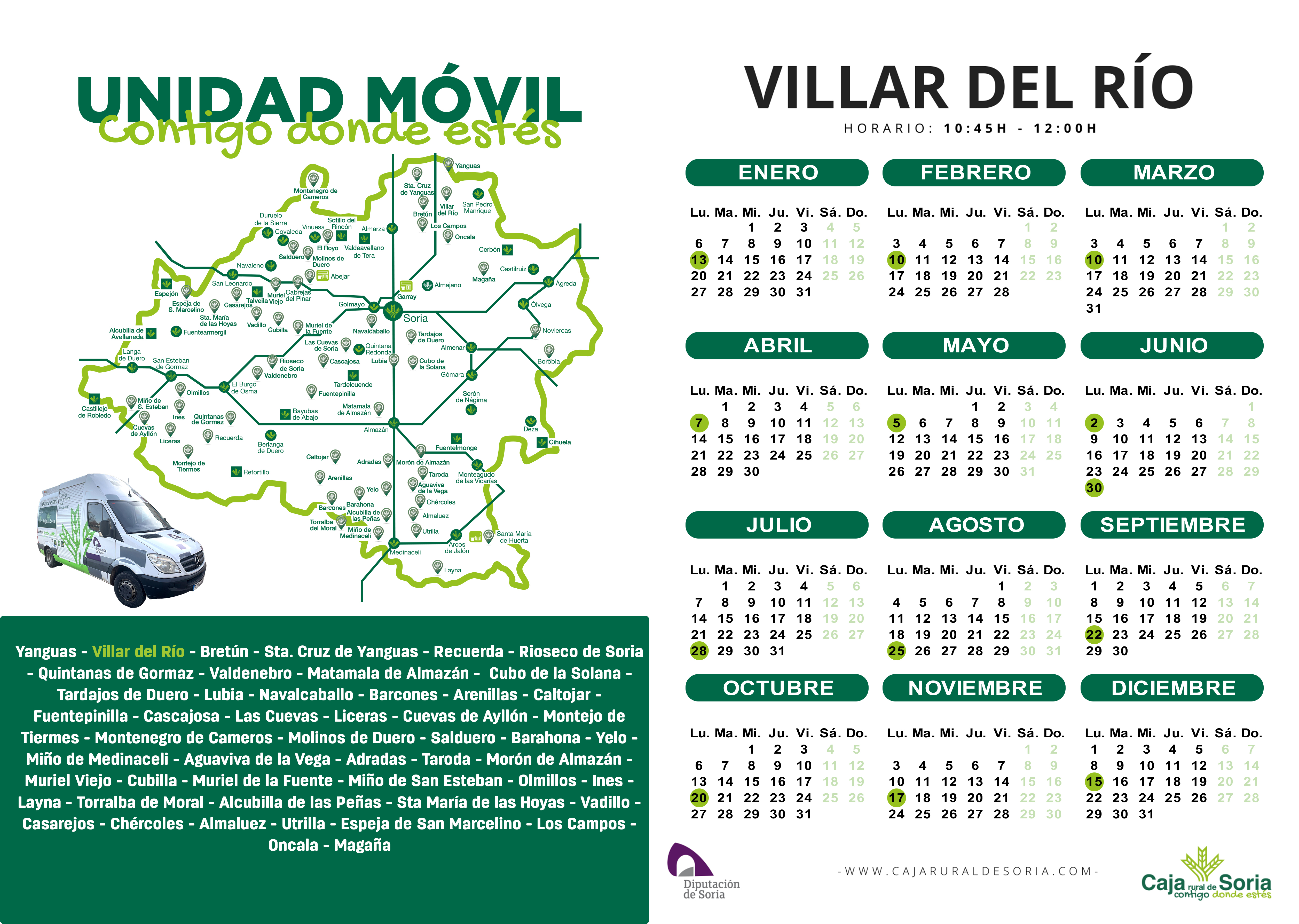 Ruta Unidad móvil, haga click para conocer las rutas y horarios de cada pueblo:
