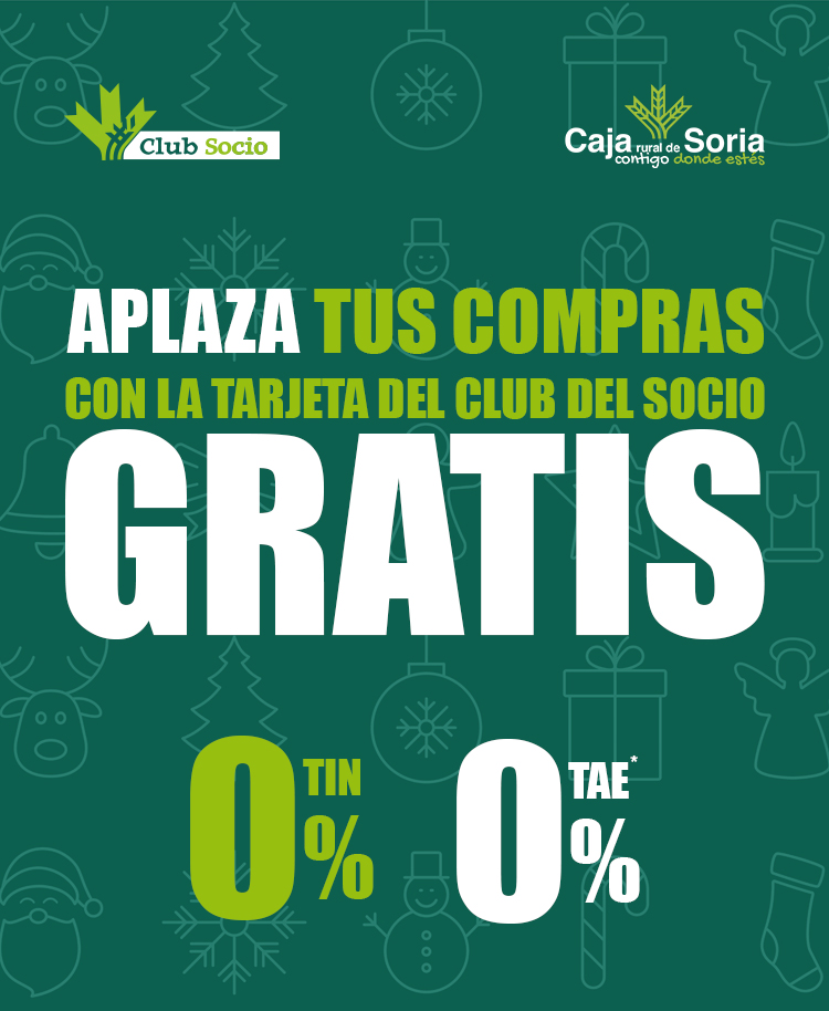 * Ejemplo representativo TAE 0,00%, calculada para una compra de 180€ aplazada a 6 meses al 0% TIN, sin comisiones ni costes adicionales, con un coste total de 0€, sistema de amortización francés, 6 cuotas mensuales de 30€. Para este ejemplo, el PVP de la compra al contado sería de 180€ y el precio total a plazos sería también de 180€. Promoción válida hasta el 15/01/2026 para compras iguales o superiores a 180€ pagadas con la tarjeta del Club del Socio y financiadas a seis meses. Comisión del 3% por amortización anticipada parcial o total sobre el capital reembolsado anticipadamente.